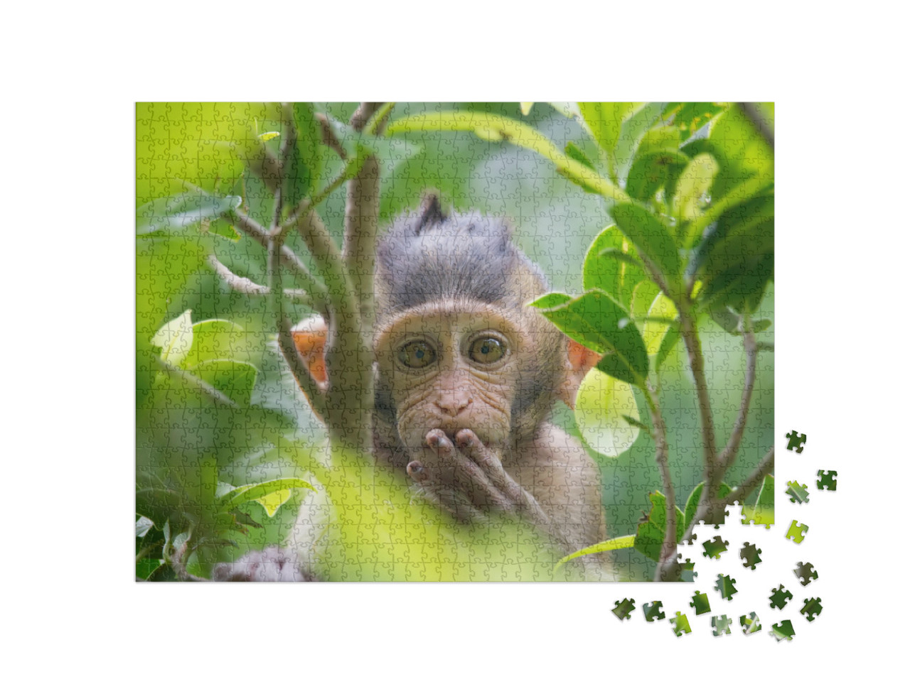 Puzzle „Ein niedlicher Affe lebt in einem natürlichen Wald in Thailand.“