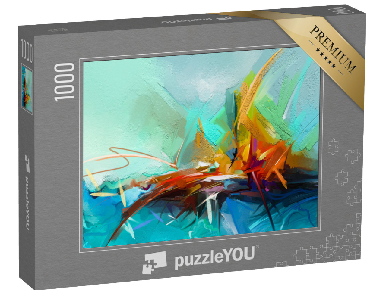 Puzzle „Semi-abstraktes Bild einer Landschaft, Ölgemälde in Gelb, Rot und Blau“