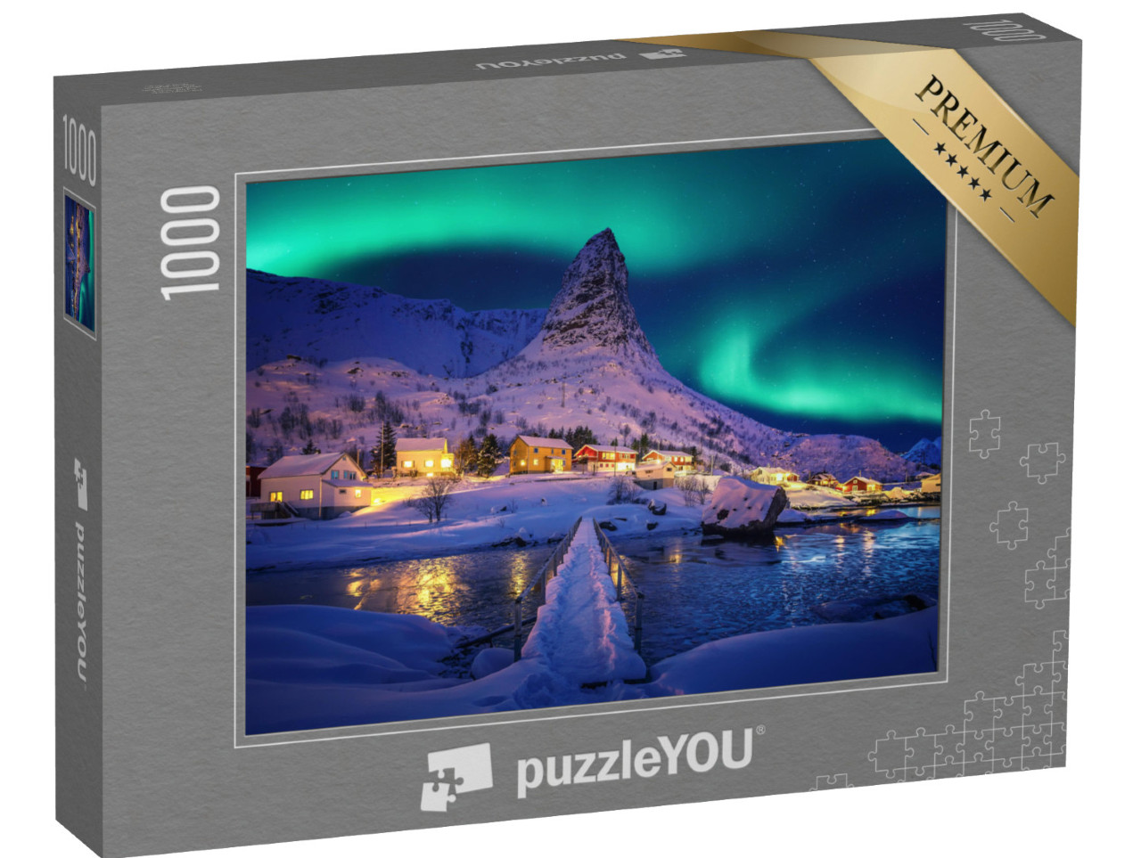 Puzzle „Polarlichter in der winterlichen Landschaft der Lofoten, Norwegen“