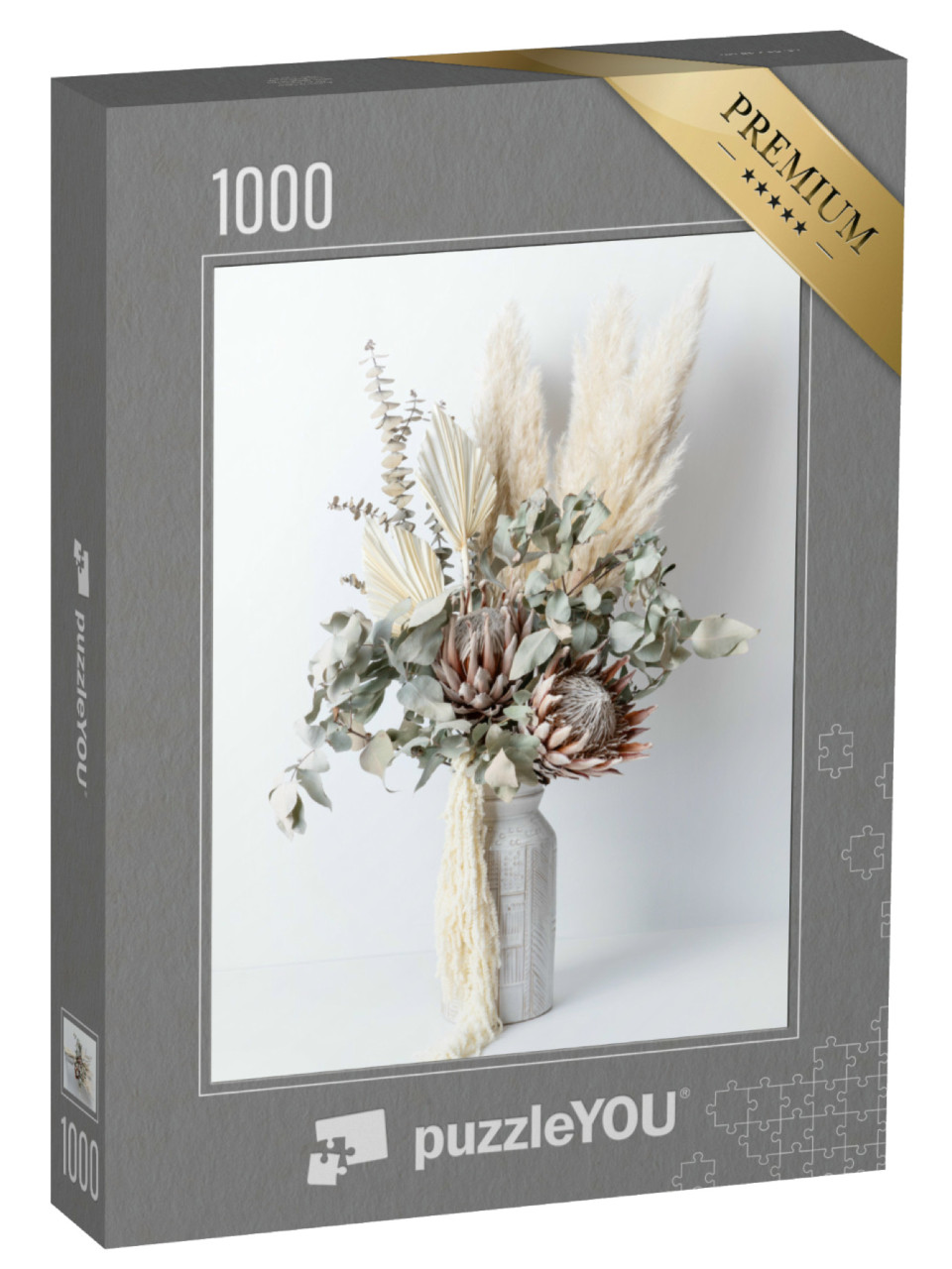 Puzzle „Trockenblumenarrangement in einer stilvollen rosa Vase“