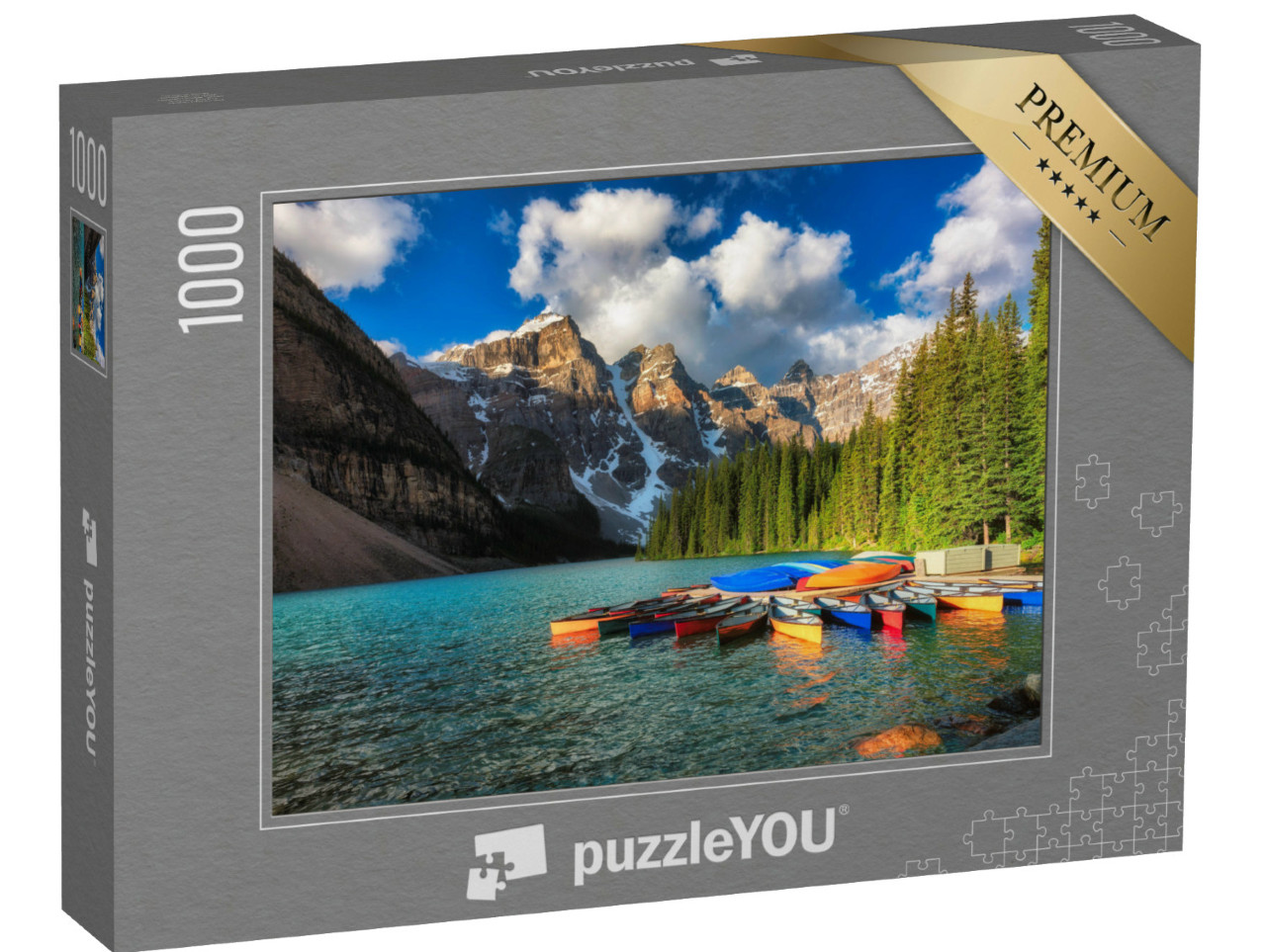 Puzzle „Kanus auf dem Moraine-See, Banff-Nationalpark in den Rocky Mountains, Alberta, Kanada.“