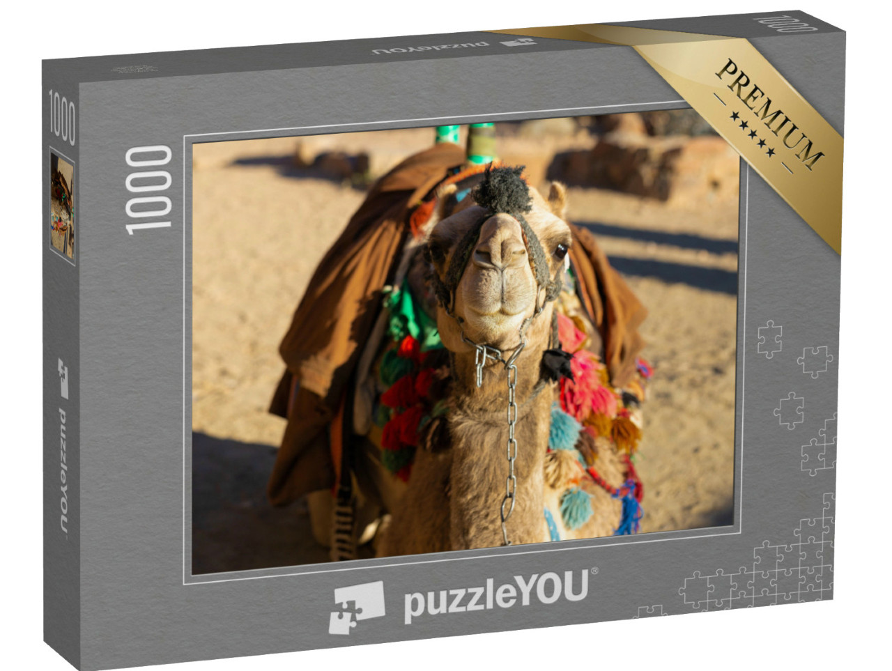 Puzzle „Dromedar Kamel vor dem Sand der heißen Wüste, Ägypten, Sinai“