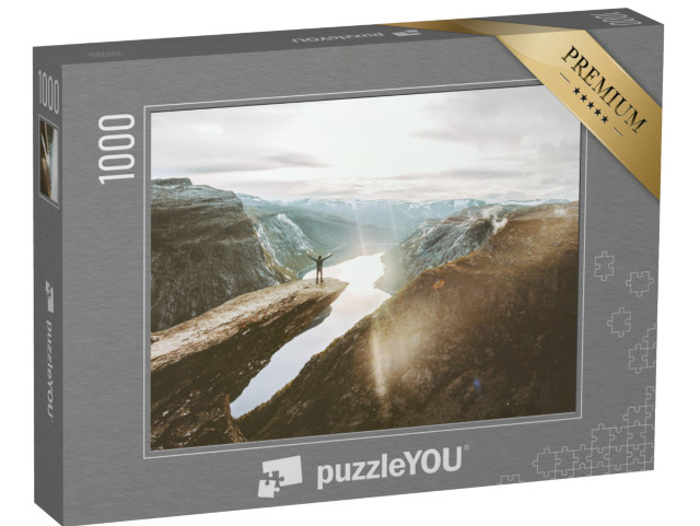 Puzzle „Ein glücklicher Mann auf den Trolltunga Klippen, Norwegen“