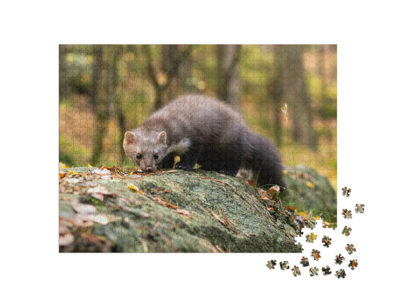 Puzzle „Europäischer Baummarder auf der Suche nach Nahrung im Wald“