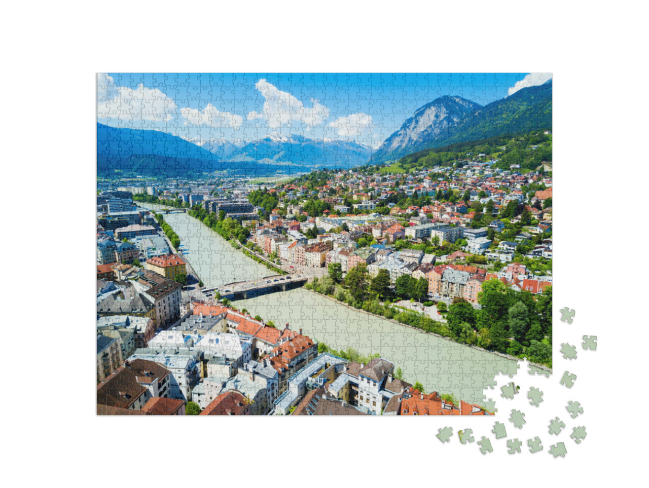 Puzzle „Fluss Inn und Innsbrucker Stadtzentrum von oben“