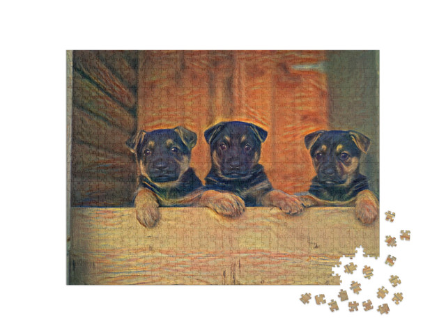 Puzzle „im Stil von Edvard Munch, Der Schrei - Deutsche Schäferhundwelpen - Puzzle-Kollektion Künstler & Gemälde“