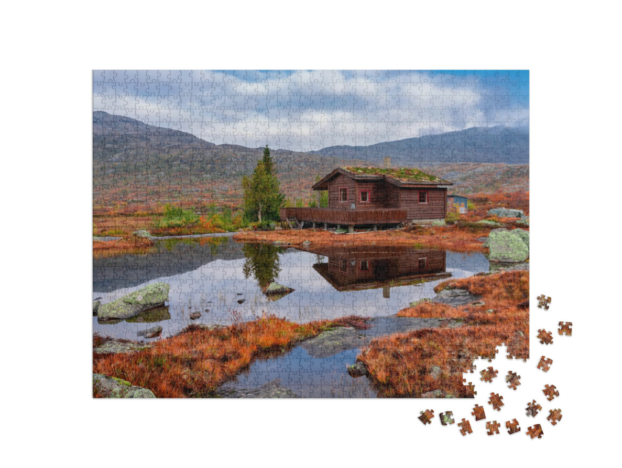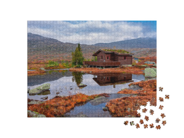 Puzzle „Ländliche Berghütten in den Bergen, Norwegen“