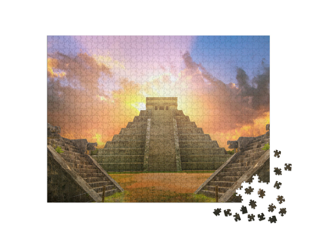 Puzzle „Maya-Pyramide El Castillo von Kukulcan im Sonnenuntergang“