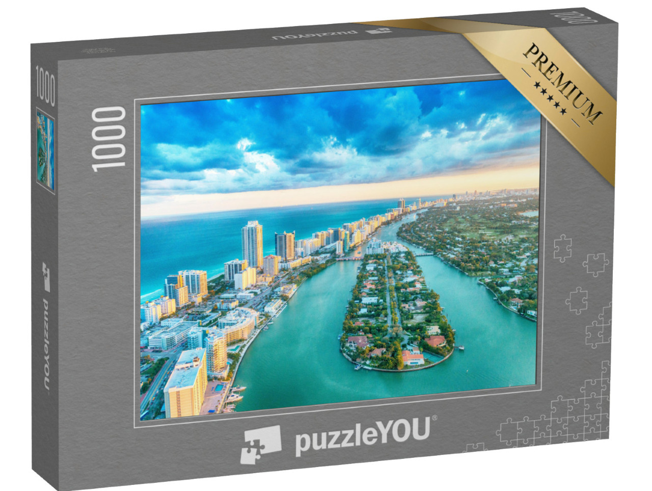 Puzzle „Miami Beach, wunderschöne Luftaufnahme von Gebäuden, Fluss und Vegetation“