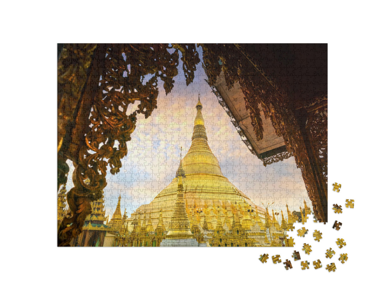 Puzzle „Mit goldenem Licht überflutete Shwedagon-Pagode in Yangon, Myanmar“
