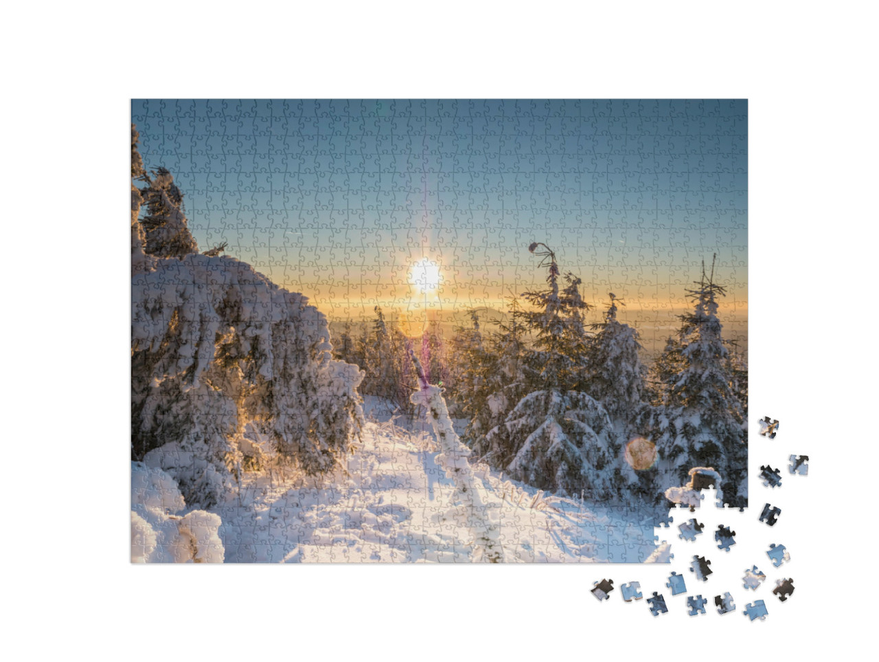 Puzzle „Sonnenuntergang im winterlichen Erzgebirge, Deutschland“