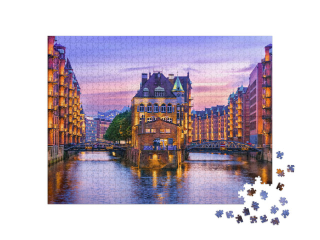 Puzzle „Speicherstadt bei Abenddämmerung im Hamburger Hafen, Deutschland“