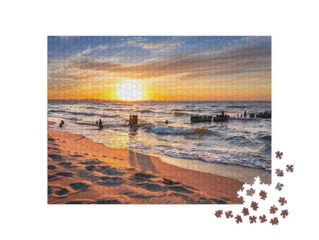 Puzzle „Sonnenuntergang am Strand an der Ostsee, Polen“