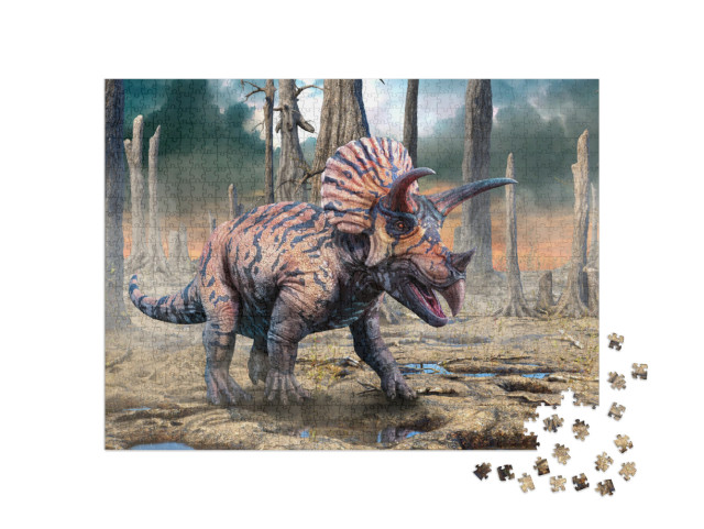 Puzzle „Triceratops aus der Kreidezeit, 3D-Illustration“
