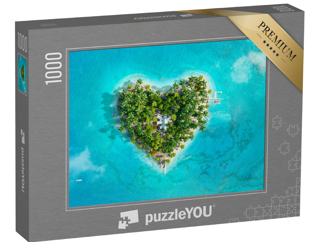 Puzzle „Digitale Kunst: Tropisches Inselparadies in Form eines Herzens“