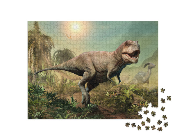 Puzzle „Tyrannosaurus rex, 3D-Illustration einer Szene“