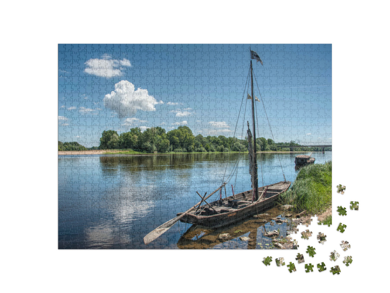 Puzzle „Kleines Fischerboot auf der Loire im Westen Frankreichs“