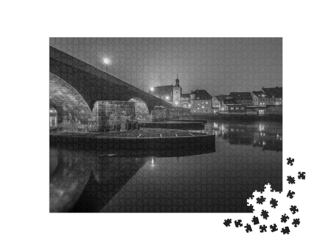 Puzzle „Blick auf die Steinbrücke in Regensburg bei Nacht“
