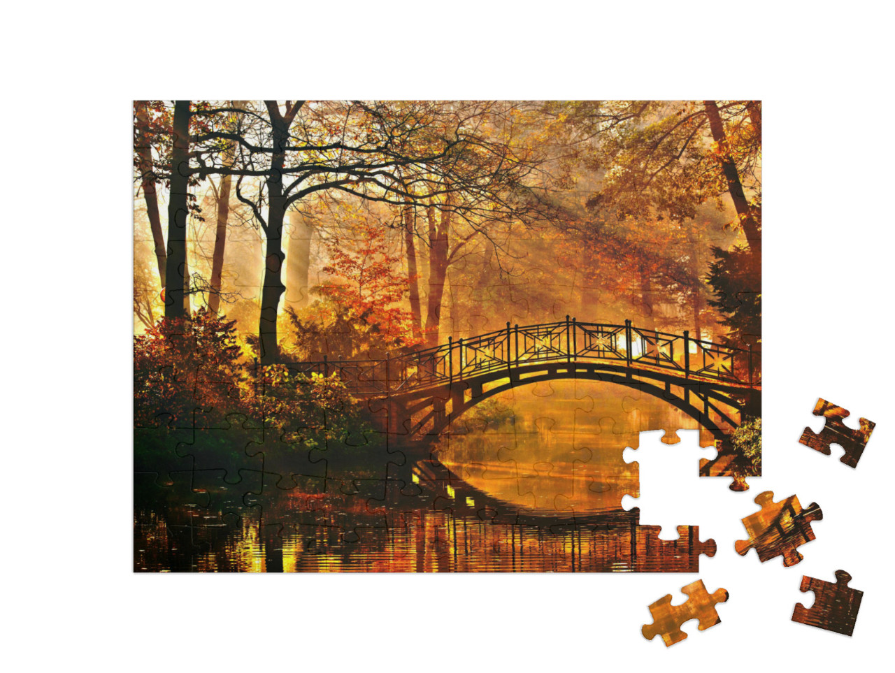 Puzzle „Alte Brücke im herbstlich nebligen Park“