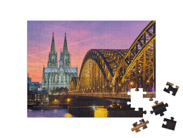 Puzzle „Kölner Dom und Hohenzollernbrücke bei Sonnenuntergang“