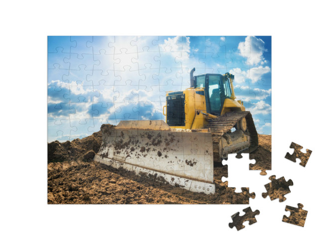 Puzzle „Gelber Bagger auf neuer Baustelle vor dem blauen Himmel“