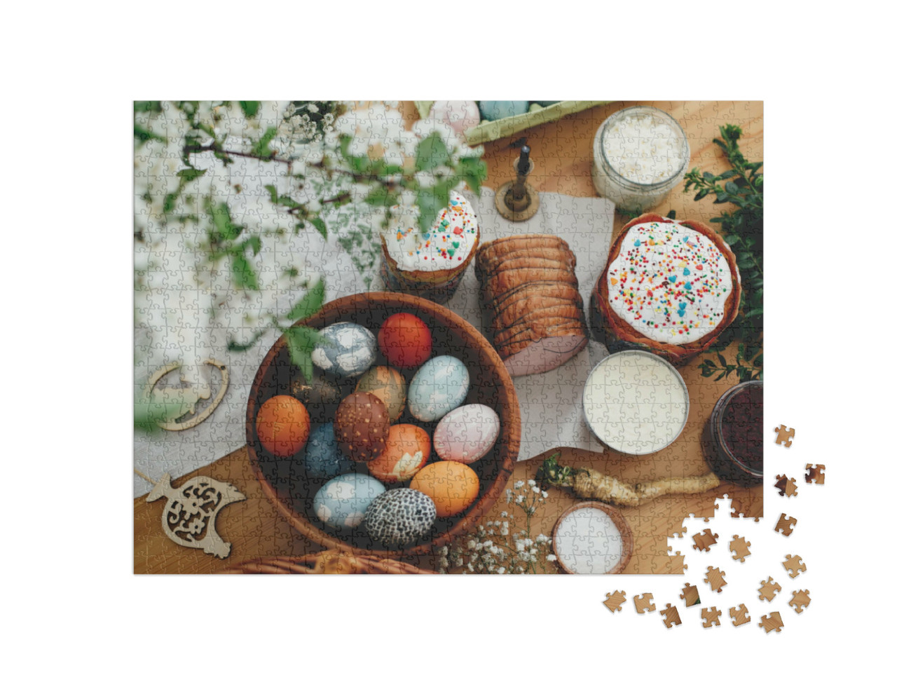 Puzzle „Ein köstliches Osterfrühstück mit Ostereiern und Schinken“