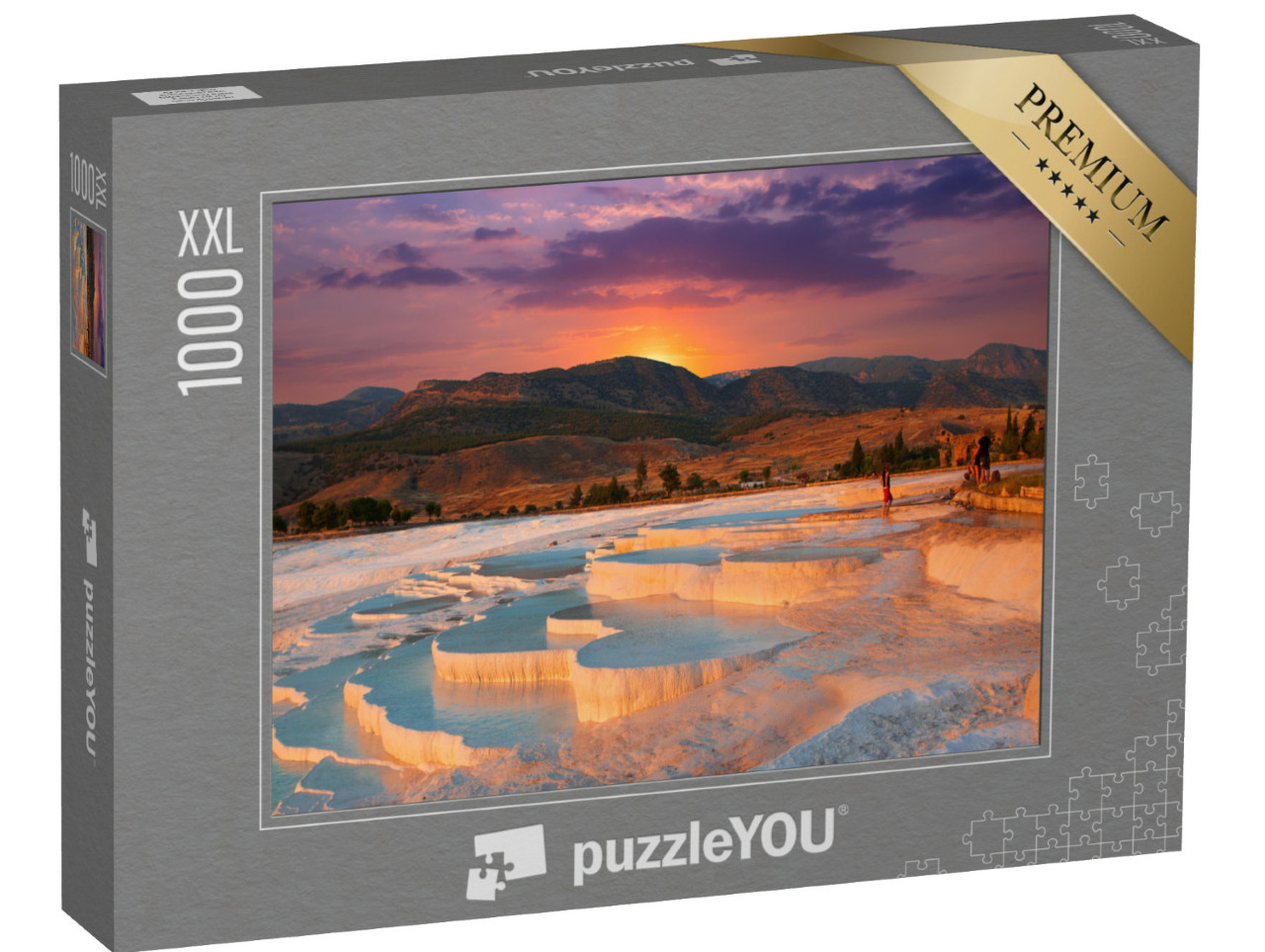Puzzle „Wunderschöner Sonnenaufgang und natürliche Travertin-Pools und Terrassen in Pamukkale“