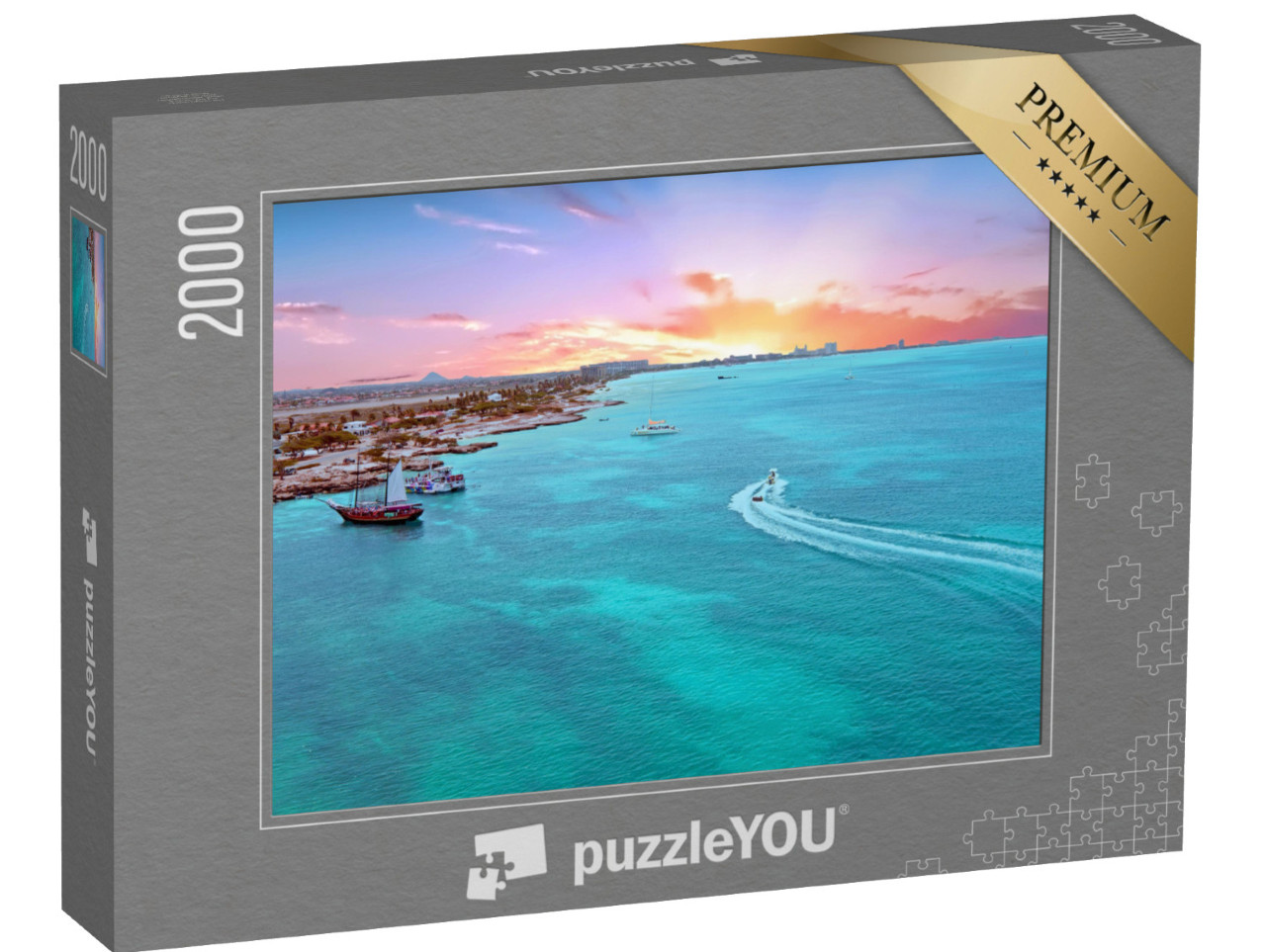 Puzzle „Luftaufnahme von der Insel Aruba im Karibischen Meer bei Sonnenuntergang“